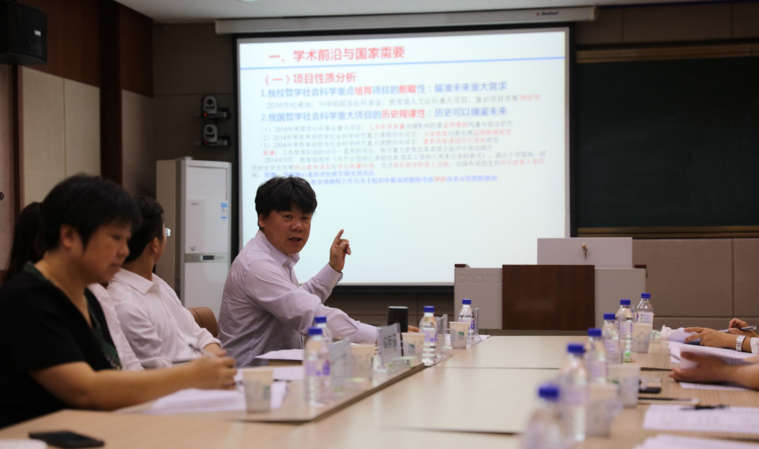 本期论坛邀请了人民教育出版社主任编辑刘启迪,我校附属小学副校长王廷波、文学院教授宋祥、教育学部教授刘学智、教育学部副教授唐丽芳、社会科学处项目管理科科长魏琳娜担任评审专家,会议由唐丽芳主持。
